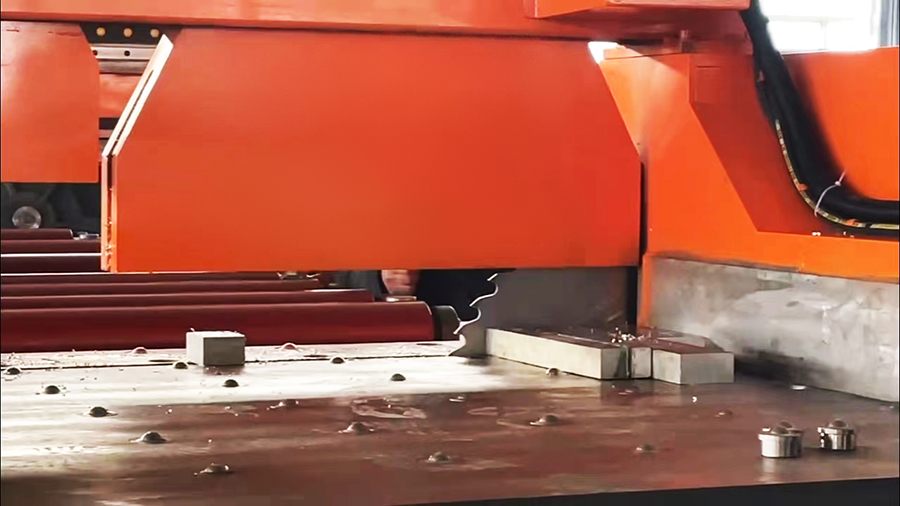 板材專切圓盤鋸采用液壓壓緊,龍門架強穩定設計,壓緊臺面預留20mm寬槽口,圓形鋸片在槽口中橫向移動,鋸片基本不會外露,操作安全系數高。板材專切圓盤鋸屬于全自動數控配置,彩色觸摸屏操縱,設置好切割參數后圓盤鋸自動送料生產。圓盤鋸的自動送料臺、工作臺、出料臺等系列輔助承載配件均可定做,移動方便。板材專切圓盤鋸也可以適應其他金屬材質工件的切割。圓盤鋸的動能強勁,鋸切精度高,生產效率高,客戶的生產要求、切割物料不同,圓盤鋸的自動切割參數可相應更改與調節。