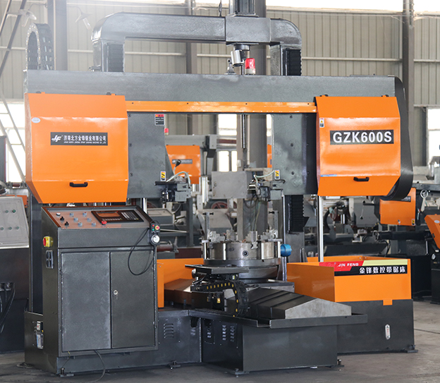 金鋒鋸業平豎兩切帶鋸床的產品型號有:GZK4230/40-45、GZK600S、GZK4250/-50、GZK1300、GZK1000S、GZK85-210、GZK40/70等。其中GZK600S帶鋸床配有旋轉工作臺,可適應異形工件加工,能靈活調整切割角度,確保鋸片始終以最佳接觸面切入,減少振動和鋸痕,可以有效增加切割精度和切割效率。平豎兩切帶鋸床結合了平切和豎切兩種模式,適用于不同加工需求,可輕松應對復雜工件的橫向、縱向切割需求,無需頻繁更換設備,節省成本。