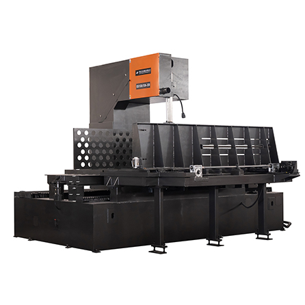 機頭移動型是大型、重型立式帶鋸床的典型結構,專為處理超大、超重工件而設計。工作臺固定不動,整個帶鋸機頭沿著導軌精確地移動,穿過被固定在工作臺上的工件。這種類型立式鋸床適合處理重型工件。